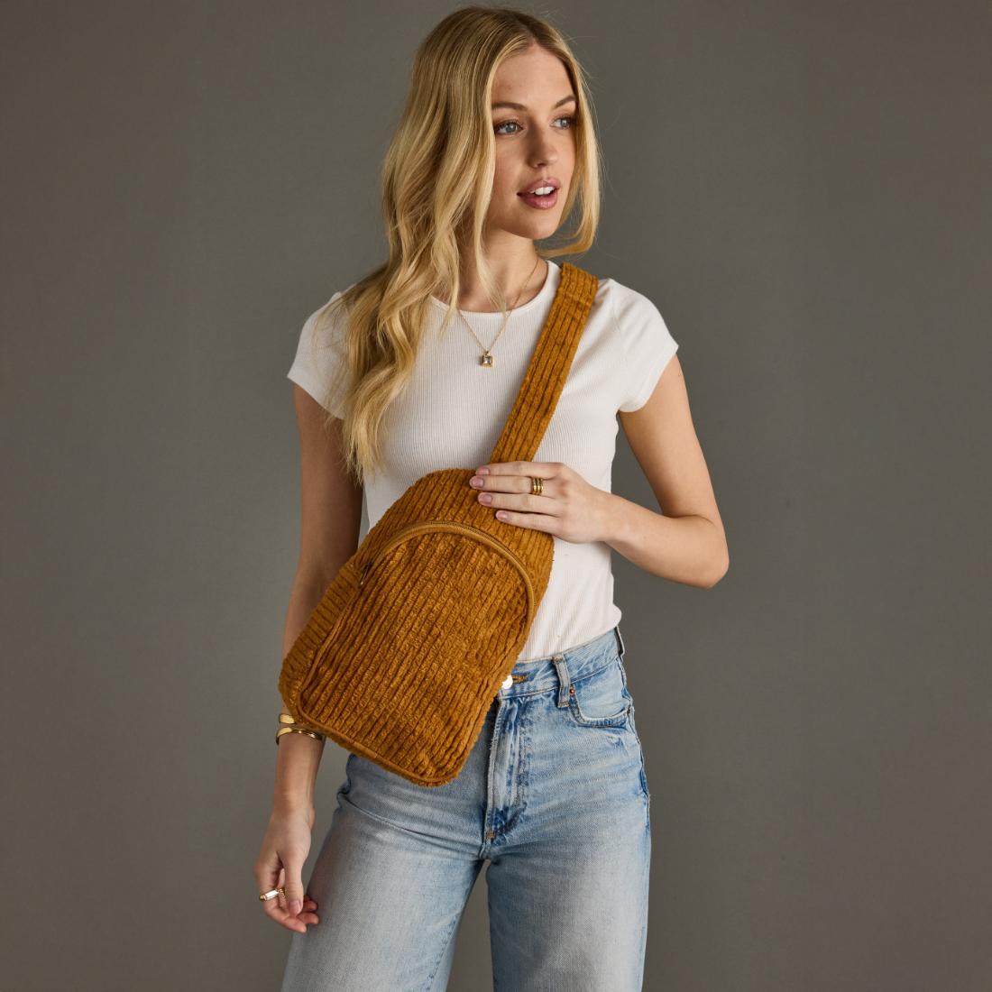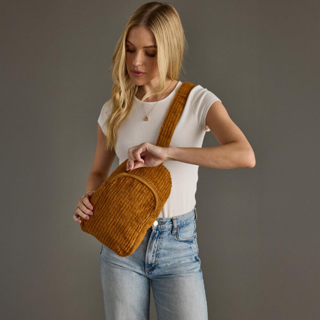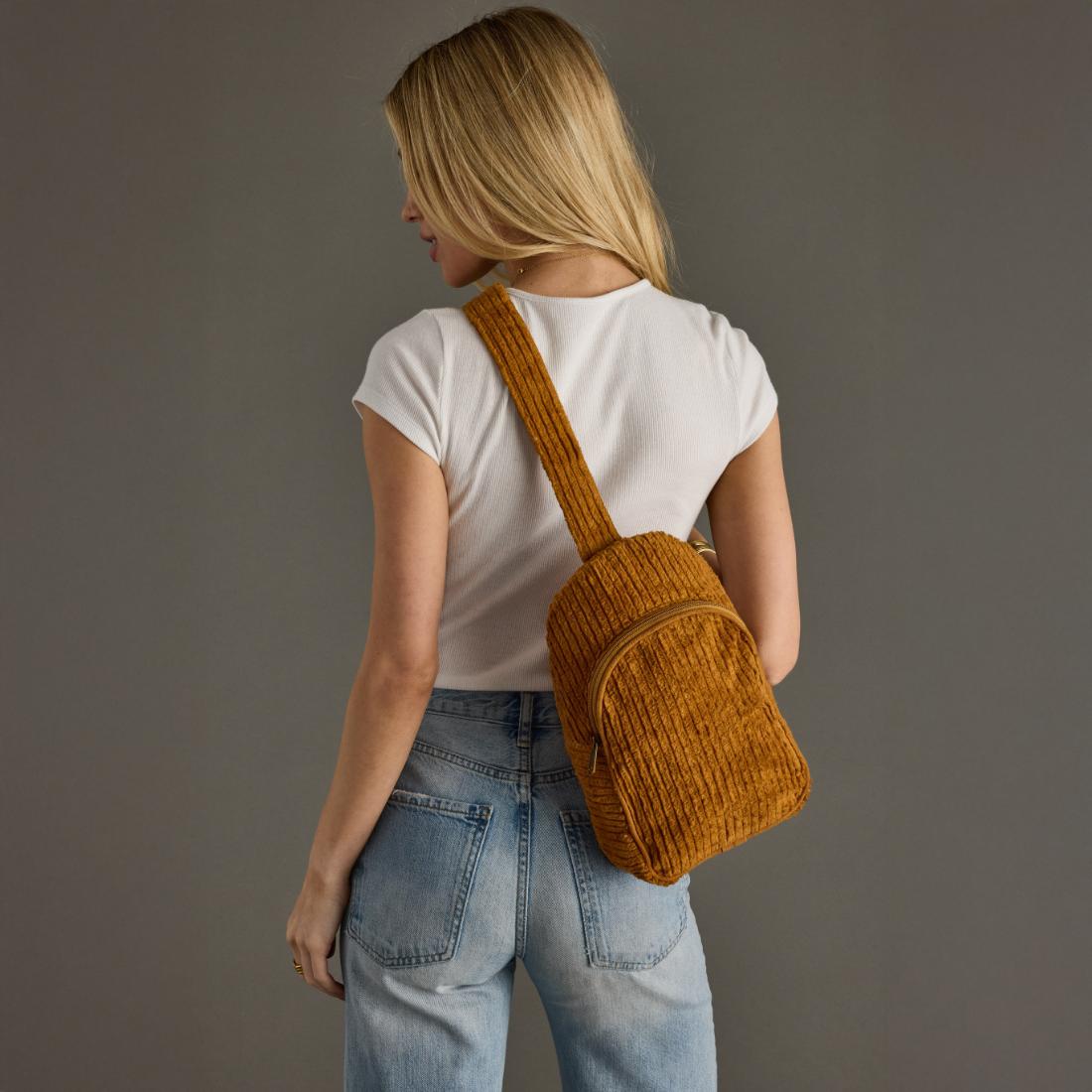 Stay mobile and organized with our corduroy sling bag. This sleek and compact bag combines corduroy texture with modern minimalist design, perfect for festivals, travel days, hiking adventures, or everyday errands. Inside, a large single pocket offers ample space for your phone, wallet, keys, and other daily necessities without the bulk of a traditional bag. The corduroy fabric adds charm and cozy texture that pairs effortlessly with casual outfits, outdoor gear, or travel attire. Lightweight yet durable, this sling bag is the ultimate companion for those who value streamlined style and practical functionality.