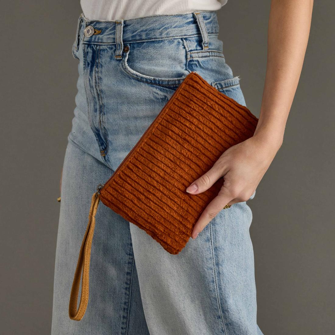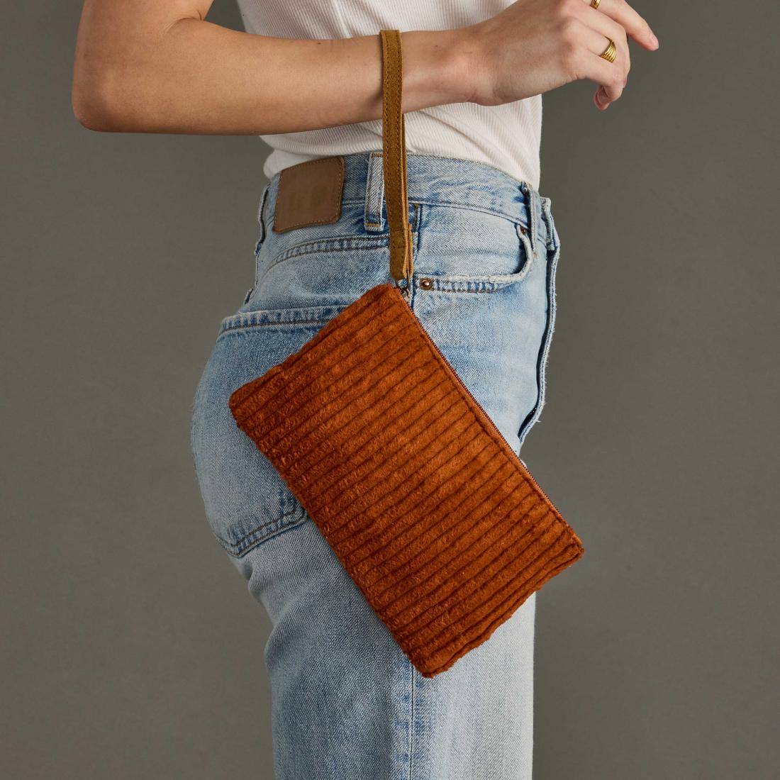- Rust corduroy wristlet