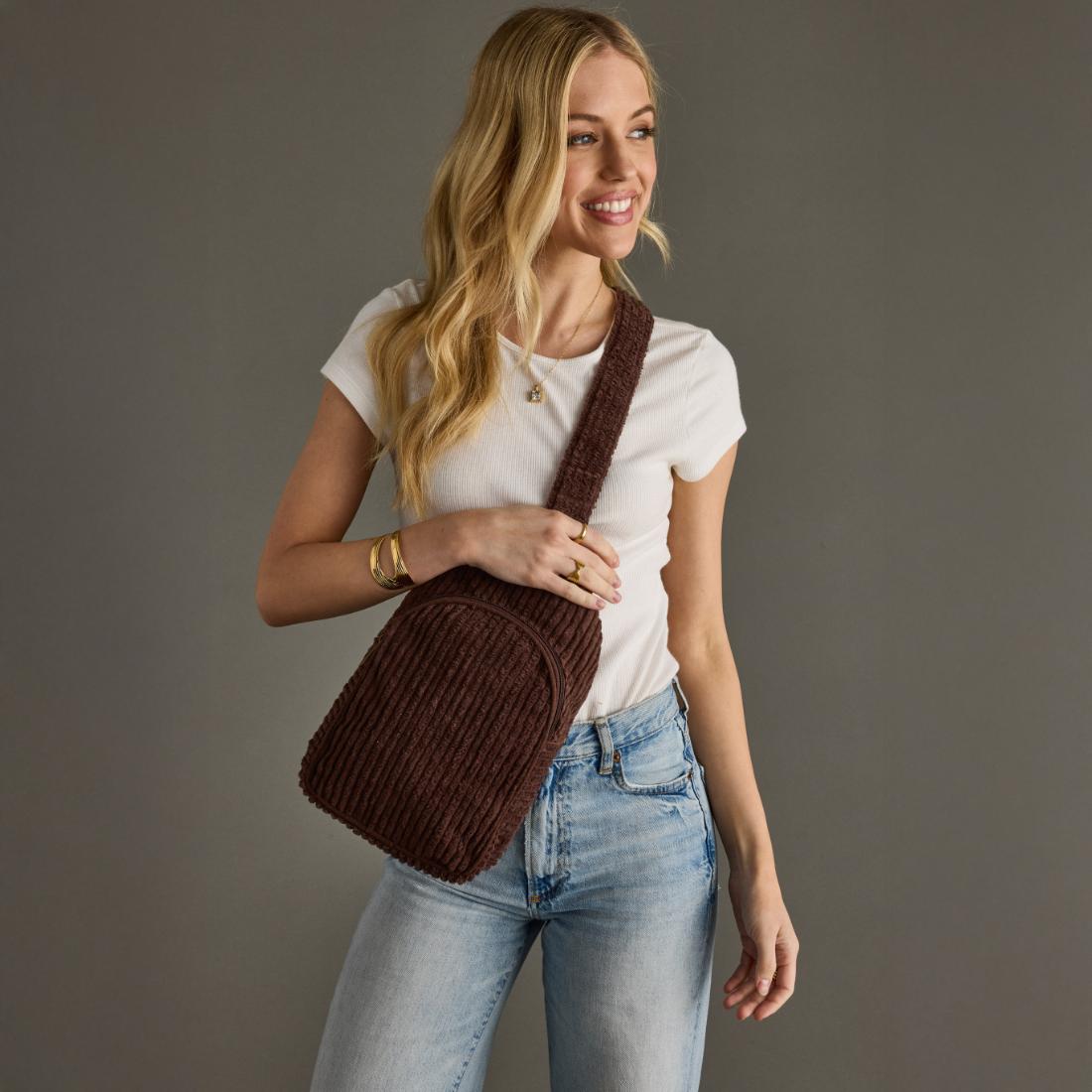 Stay mobile and organized with our corduroy sling bag. This sleek and compact bag combines corduroy texture with modern minimalist design, perfect for festivals, travel days, hiking adventures, or everyday errands. Inside, a large single pocket offers ample space for your phone, wallet, keys, and other daily necessities without the bulk of a traditional bag. The corduroy fabric adds charm and cozy texture that pairs effortlessly with casual outfits, outdoor gear, or travel attire. Lightweight yet durable, this sling bag is the ultimate companion for those who value streamlined style and practical functionality.
