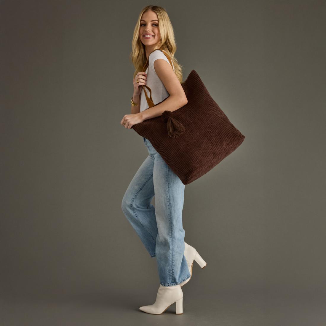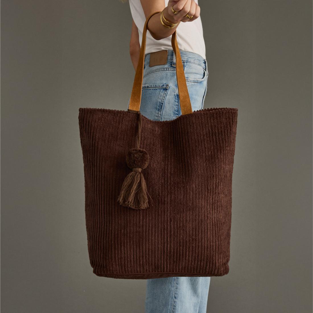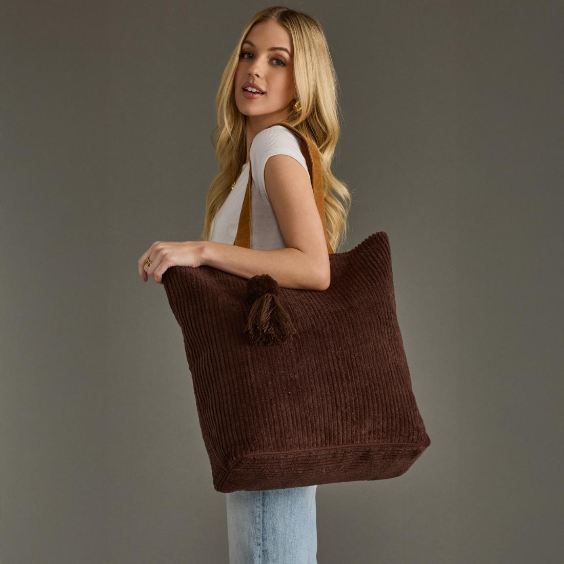Elevate your travel style with our corduroy tote bag that combines retro texture with modern functionality. This stylish bag features rich corduroy fabric that adds charm to any adventure, whether you're heading to the mountains for a ski trip or packing for a weekend getaway. The secure snap closure at the top protects your belongings, while thoughtful interior organization includes a zippered pocket for valuables and two small open pockets to keep essentials within easy reach. Spacious enough to hold clothing, shoes, and travel necessities, yet compact enough for easy transport, this corduroy tote brings cozy texture and timeless style to every journey.