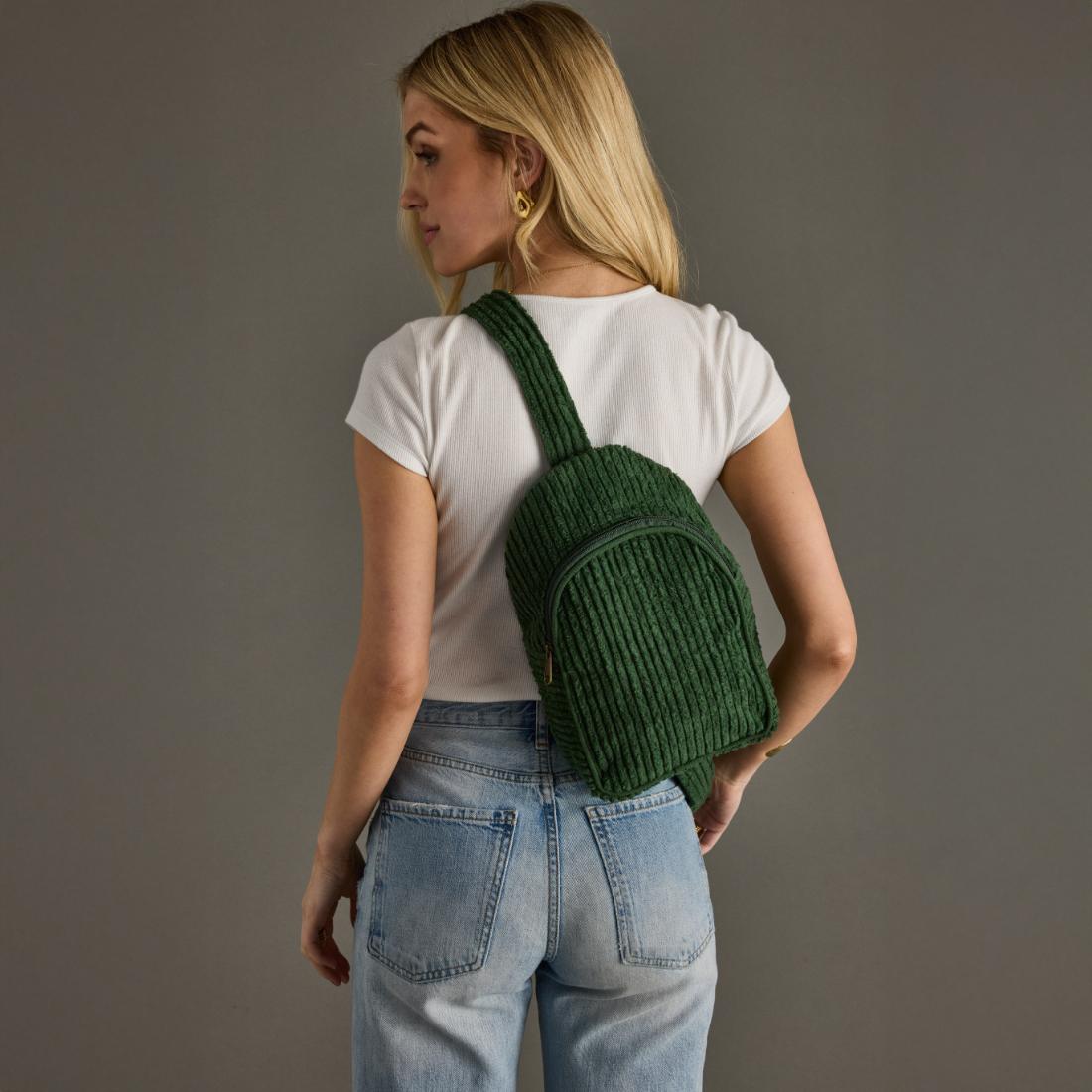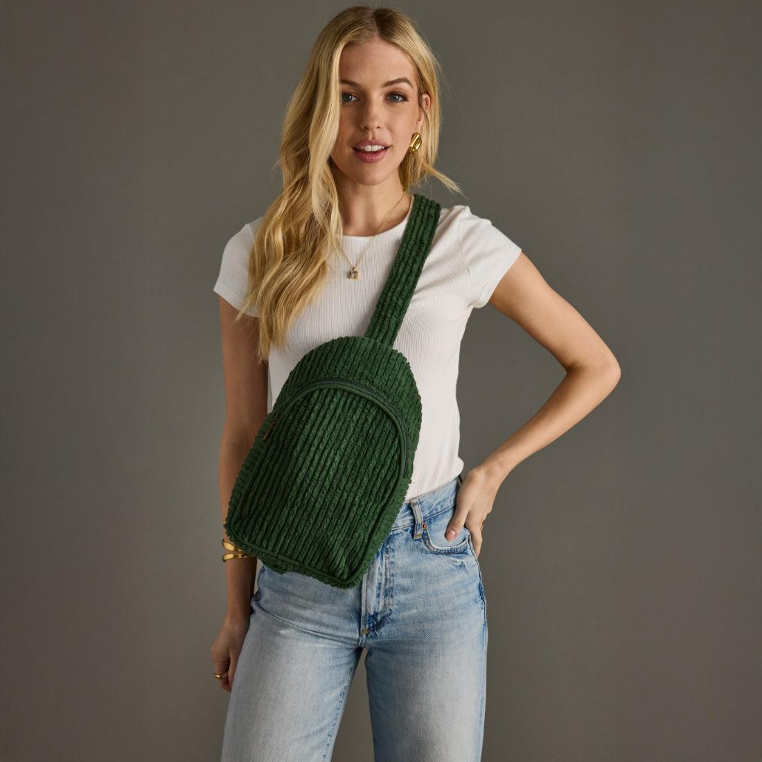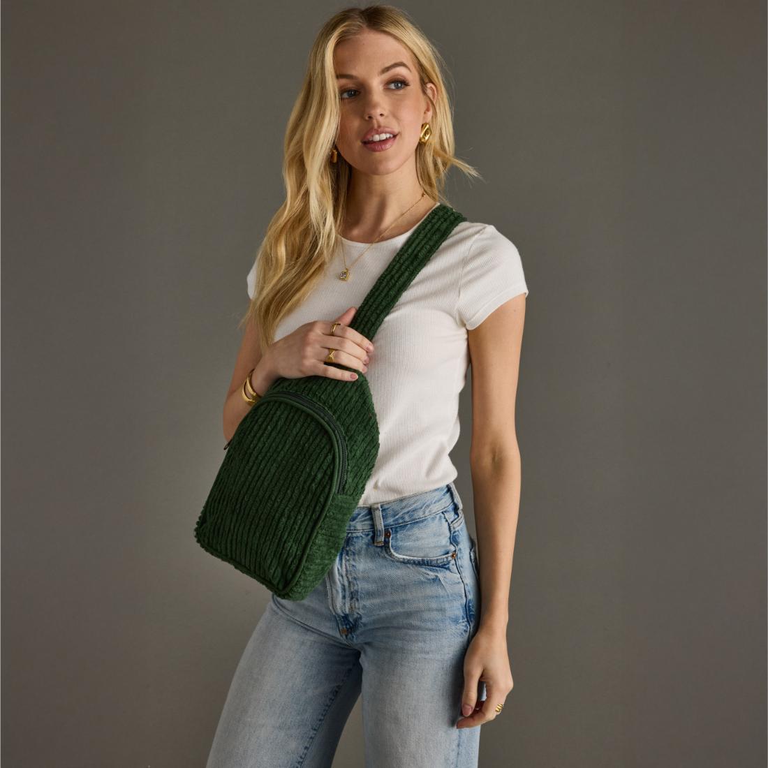 - Dark green corduroy sling bag