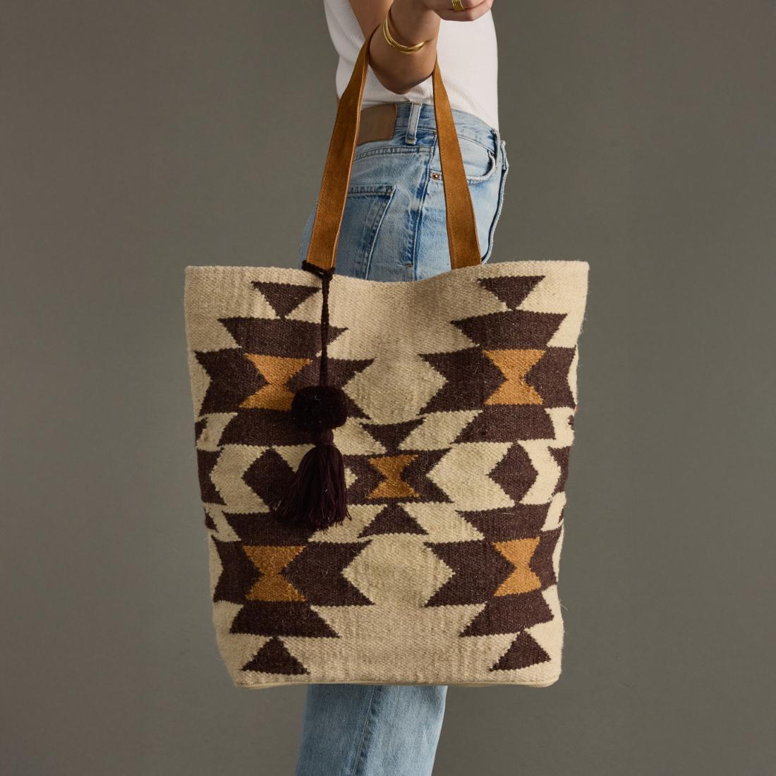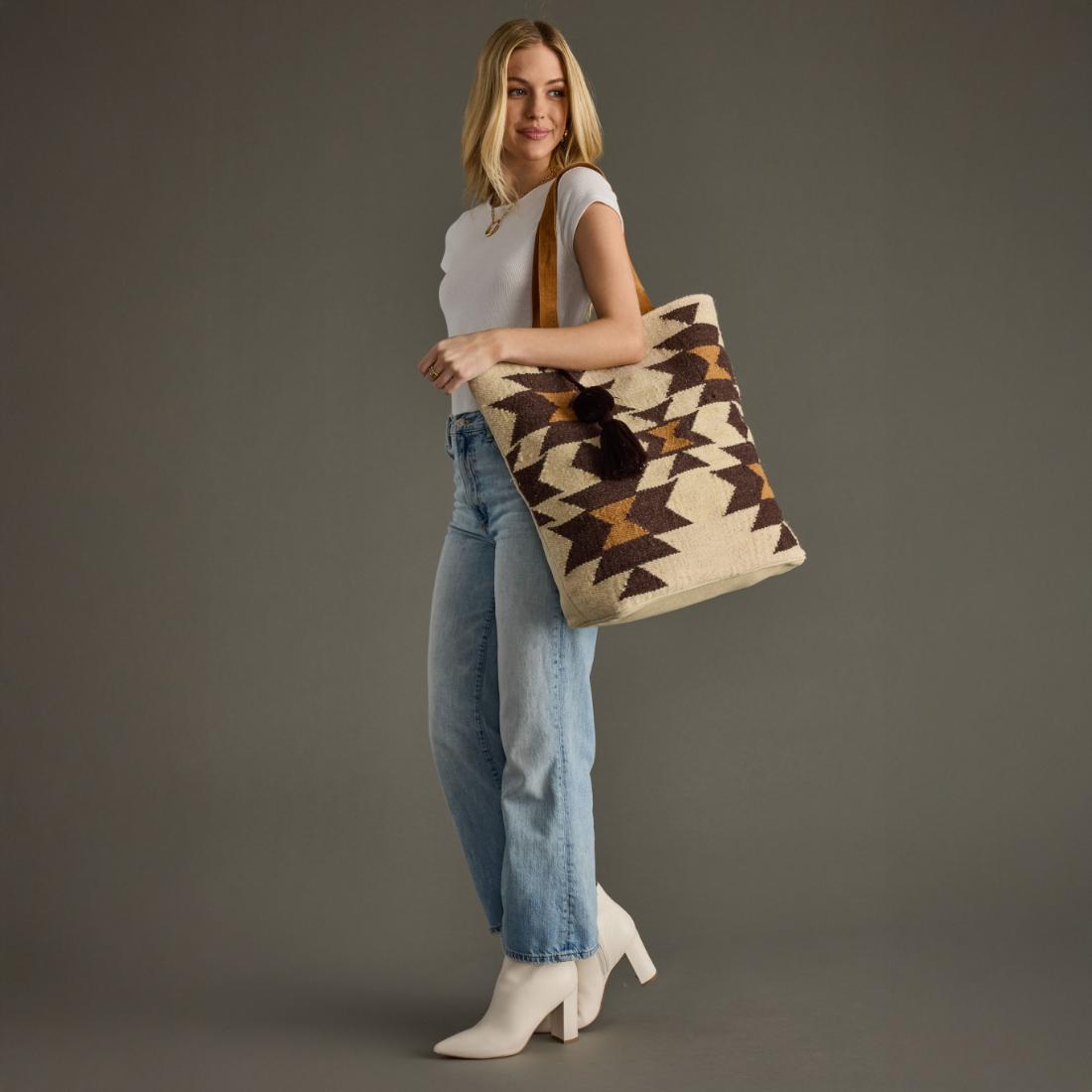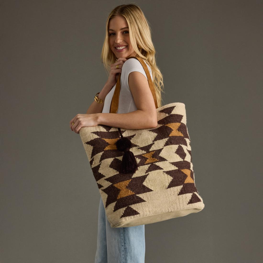 - Cream, brown and tan western-inspired tote