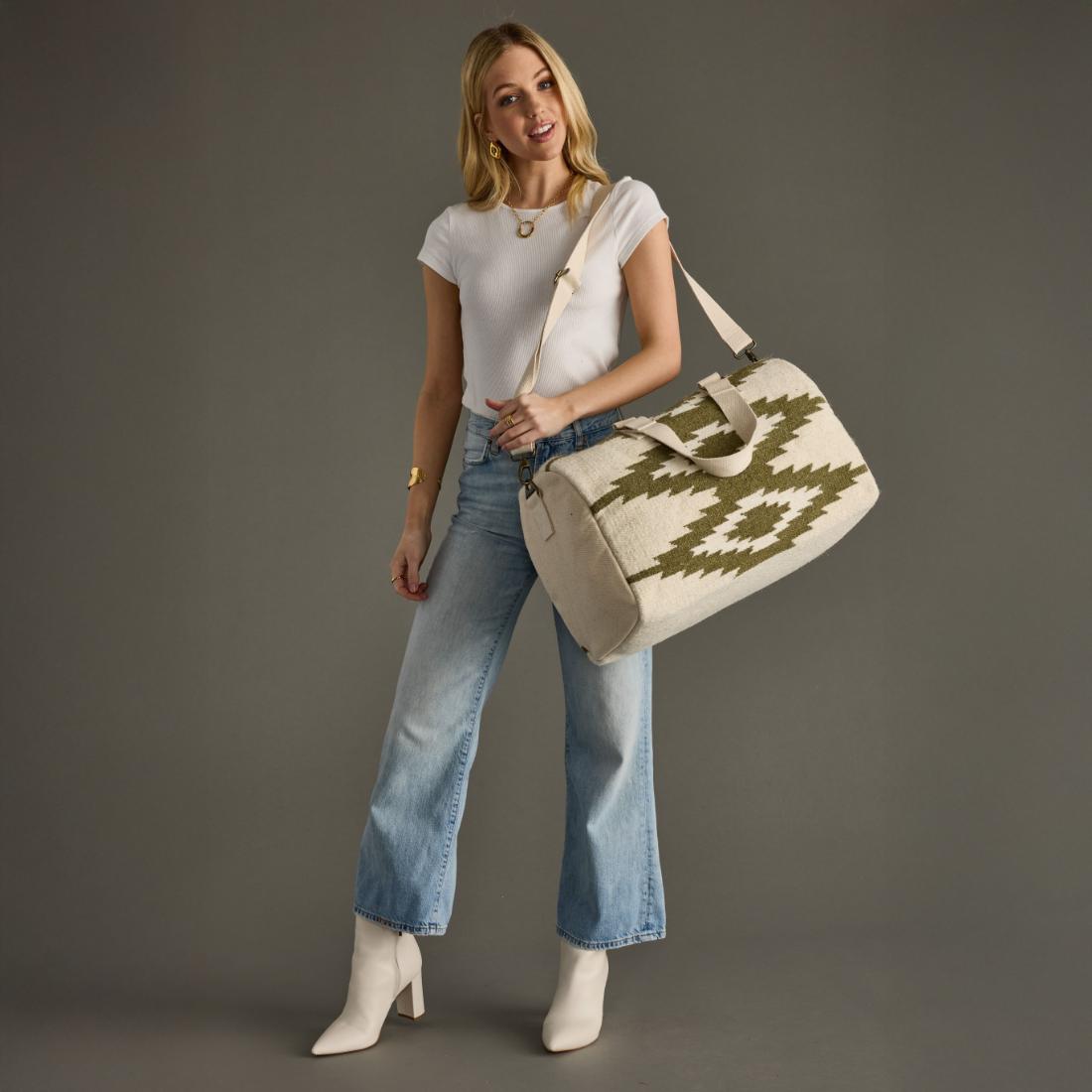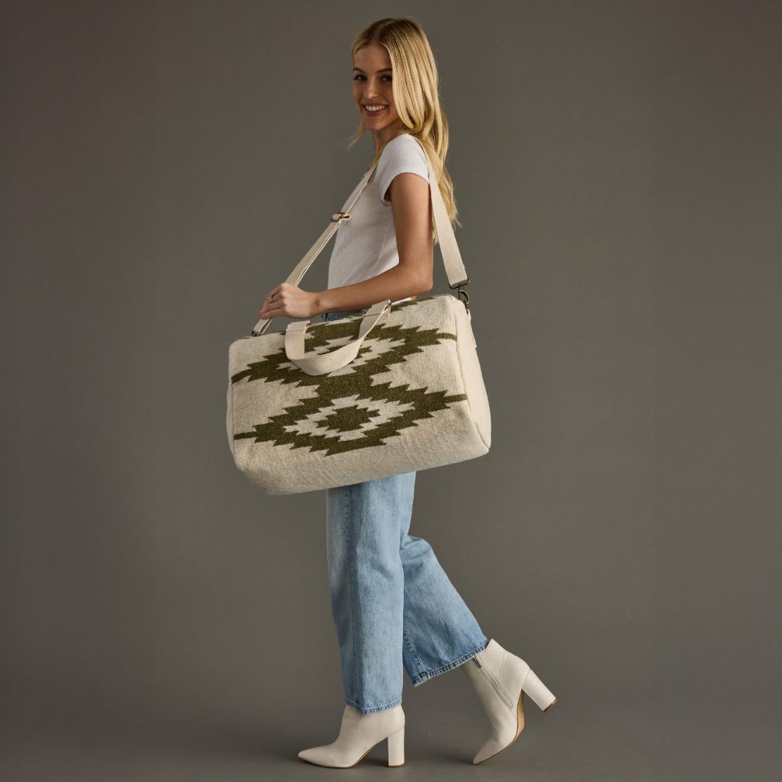 Travel in style with our duffel bag featuring subtle western-inspired details that add character to every destination. This versatile weekender combines timeless design with modern functionality, making it perfect for weekend getaways or spontaneous adventures. The secure zipper closure at the top keeps your belongings protected, while thoughtful interior organization includes a zippered pocket for valuables and two small open pockets to keep essentials easily accessible. Spacious enough to pack clothing, shoes, and travel necessities, yet compact enough for easy storage, this neutral-toned duffel transitions seamlessly from mountain retreats to city escapes.