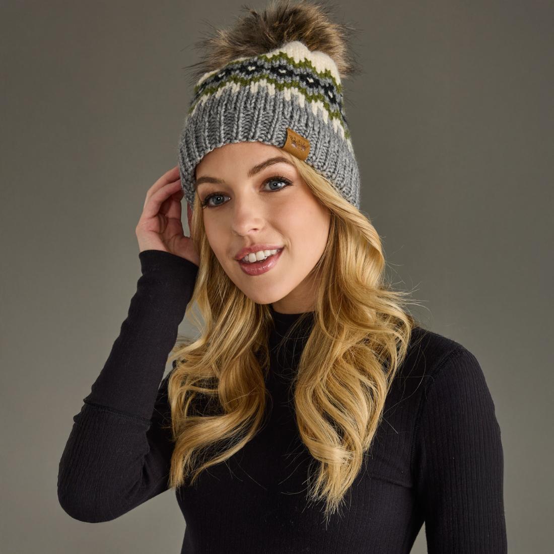 Elevate your winter style with this patterned knit pom hat. This eye-catching winter hat showcases intricate patterns that add visual interest and versatility to any cold-weather outfit. The one-size construction ensures a comfortable fit for most, making it an ideal gift or personal winter essential. Whether you're exploring snowy trails or running errands around town, this patterned pom hat delivers both warmth and standout style. Perfect for those who appreciate thoughtful design and cozy comfort in their winter accessories.