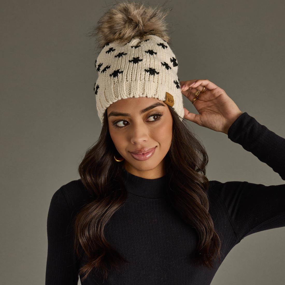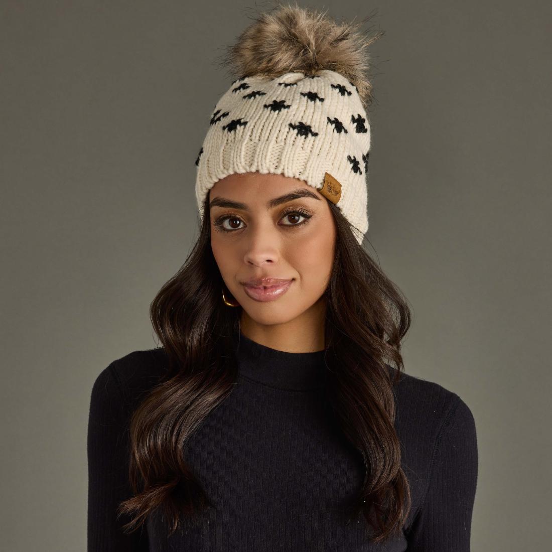 Elevate your winter style with this patterned knit pom hat. This eye-catching winter hat showcases intricate patterns that add visual interest and versatility to any cold-weather outfit. The one-size construction ensures a comfortable fit for most, making it an ideal gift or personal winter essential. Whether you're exploring snowy trails or running errands around town, this patterned pom hat delivers both warmth and standout style. Perfect for those who appreciate thoughtful design and cozy comfort in their winter accessories.