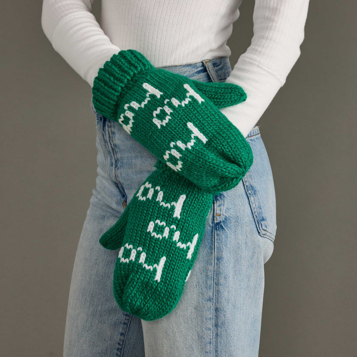 Spread holiday cheer with these green mittens featuring classic white "ho ho ho" text throughout. These festive knit mittens combine cozy comfort with joyful style, making them perfect for holiday gatherings, winter outings, ski trips, or everyday cold-weather wear. The soft fleece lining keeps your hands warm and comfortable even on the chilliest days, and the one-size construction ensures a comfortable fit for most, making it an ideal gift for friends, family, or yourself.