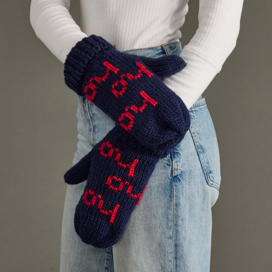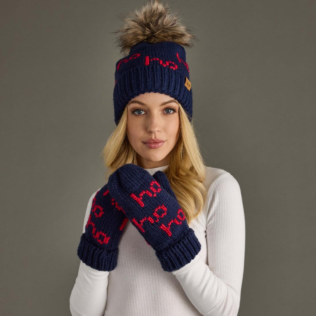 Spread holiday cheer with these navy mittens featuring playful red "ho ho ho" text throughout. These festive knit mittens combine cozy comfort with joyful style, making them perfect for holiday gatherings, winter outings, ski trips, or everyday cold-weather wear. The soft fleece lining keeps your hands warm and comfortable even on the chilliest days, and the one-size construction ensures a comfortable fit for most, making it an ideal gift for friends, family, or yourself.