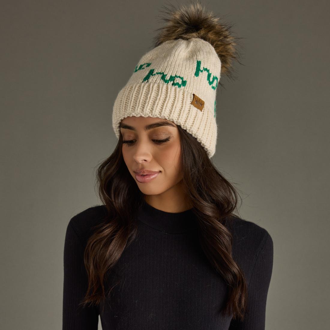 Ho Ho Ho Pom Hat - Beige & Green