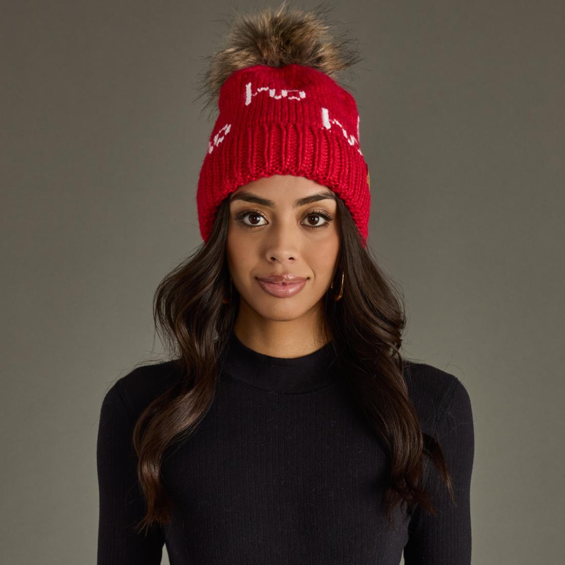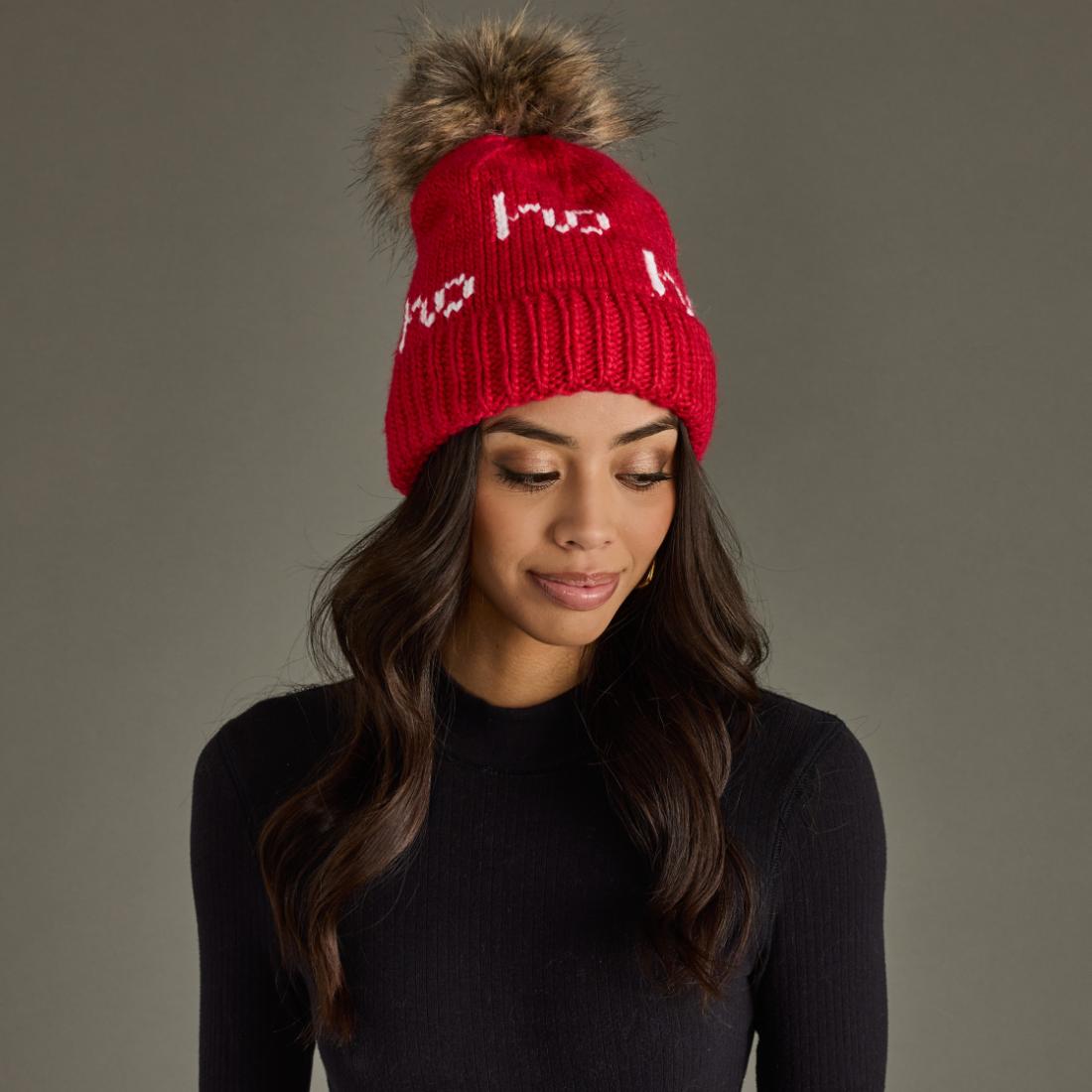 Spread holiday cheer with this red pom hat featuring classic white "ho ho ho" text throughout. This festive knit hat combines cozy comfort with joyful style, making it perfect for holiday gatherings, winter outings, ski trips, or everyday cold-weather wear. The soft fleece lining keeps your head warm and comfortable even on the chilliest days, and the one-size construction ensures a comfortable fit for most, making it an ideal gift for friends, family, or yourself.