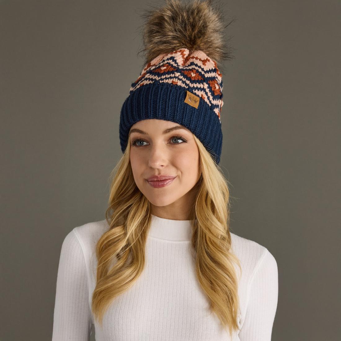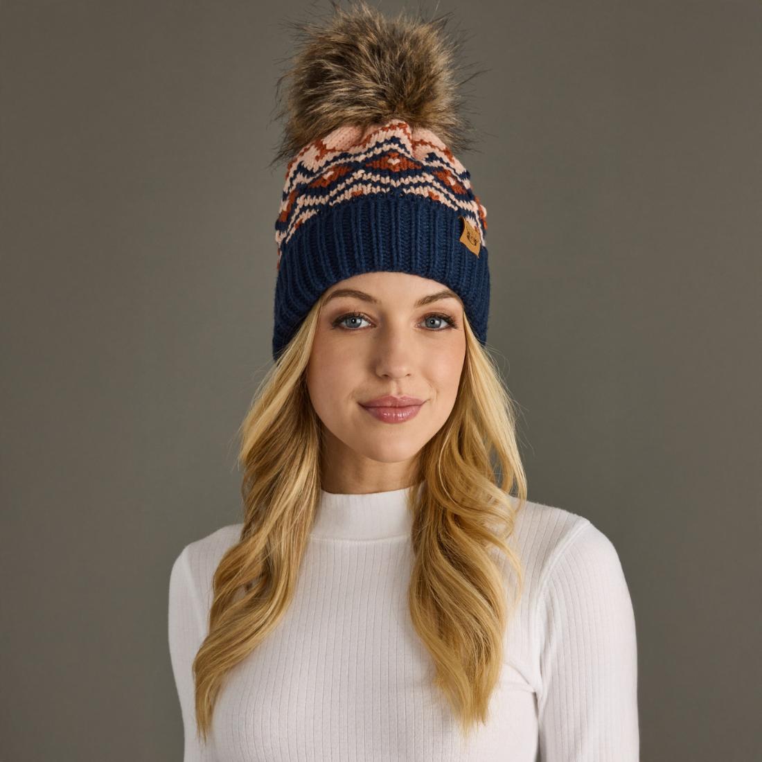 Elevate your winter style with this patterned knit pom hat. This eye-catching winter hat showcases intricate patterns that add visual interest and versatility to any cold-weather outfit. The one-size construction ensures a comfortable fit for most, making it an ideal gift or personal winter essential. Whether you're exploring snowy trails or running errands around town, this patterned pom hat delivers both warmth and standout style. Perfect for those who appreciate thoughtful design and cozy comfort in their winter accessories.