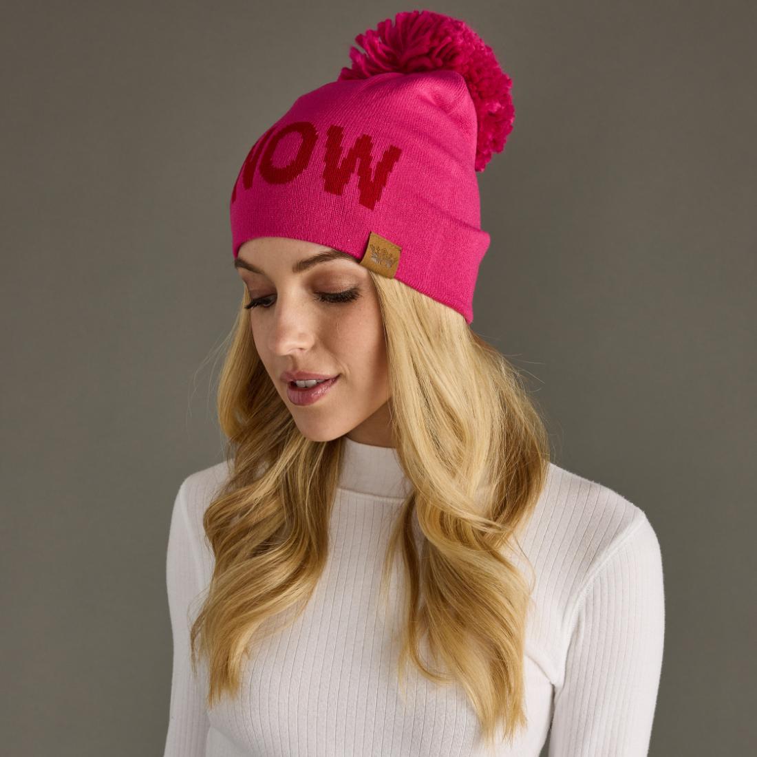 Embrace winter in style with our bright pink knit pom hat featuring bold red "SNOW" text on the front. This cozy winter hat celebrates snow days and mountain adventures, making it perfect for skiing, snowboarding, winter hikes, or everyday cold-weather wear. The one-size construction ensures a comfortable fit for most, making it an ideal gift for snow lovers or a go-to accessory for your own winter wardrobe. Whether you're carving down the slopes, building snowmen, or simply enjoying a snowy day, this pom hat brings warmth, personality, and snow-loving spirit to every cold-weather adventure.