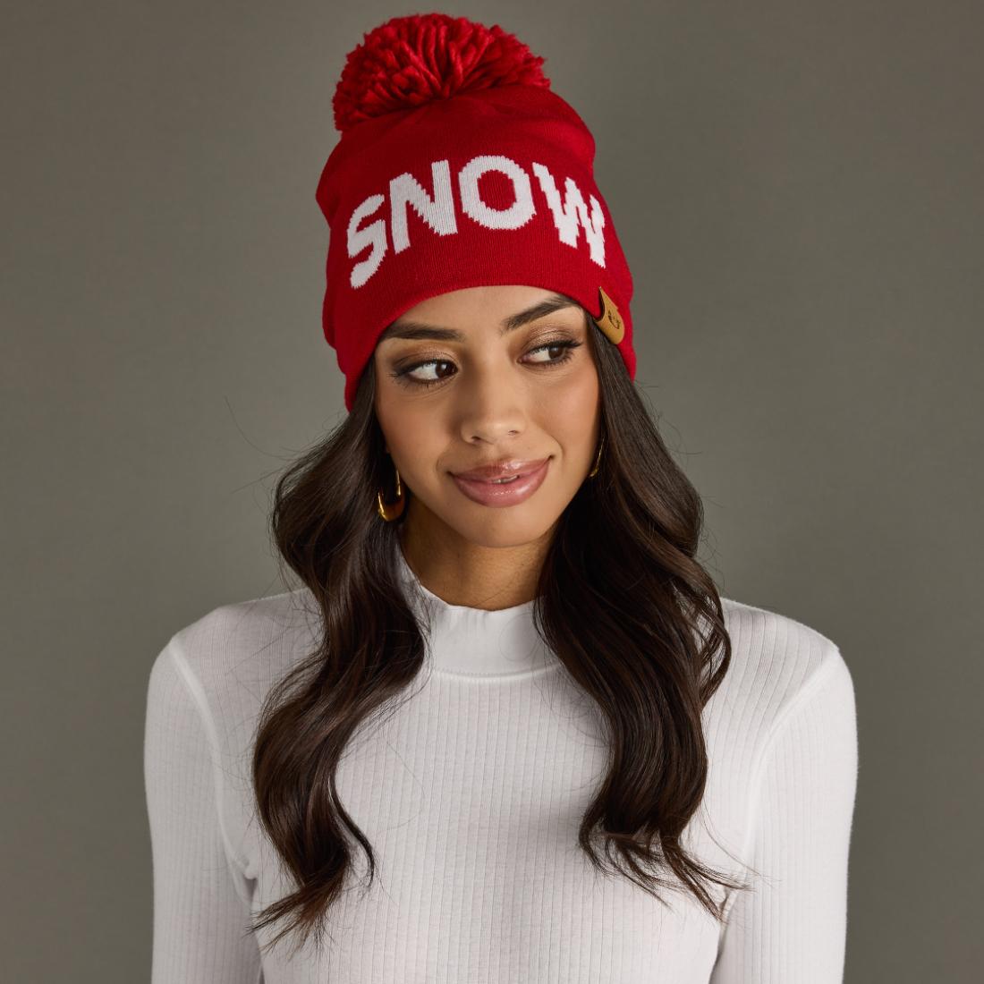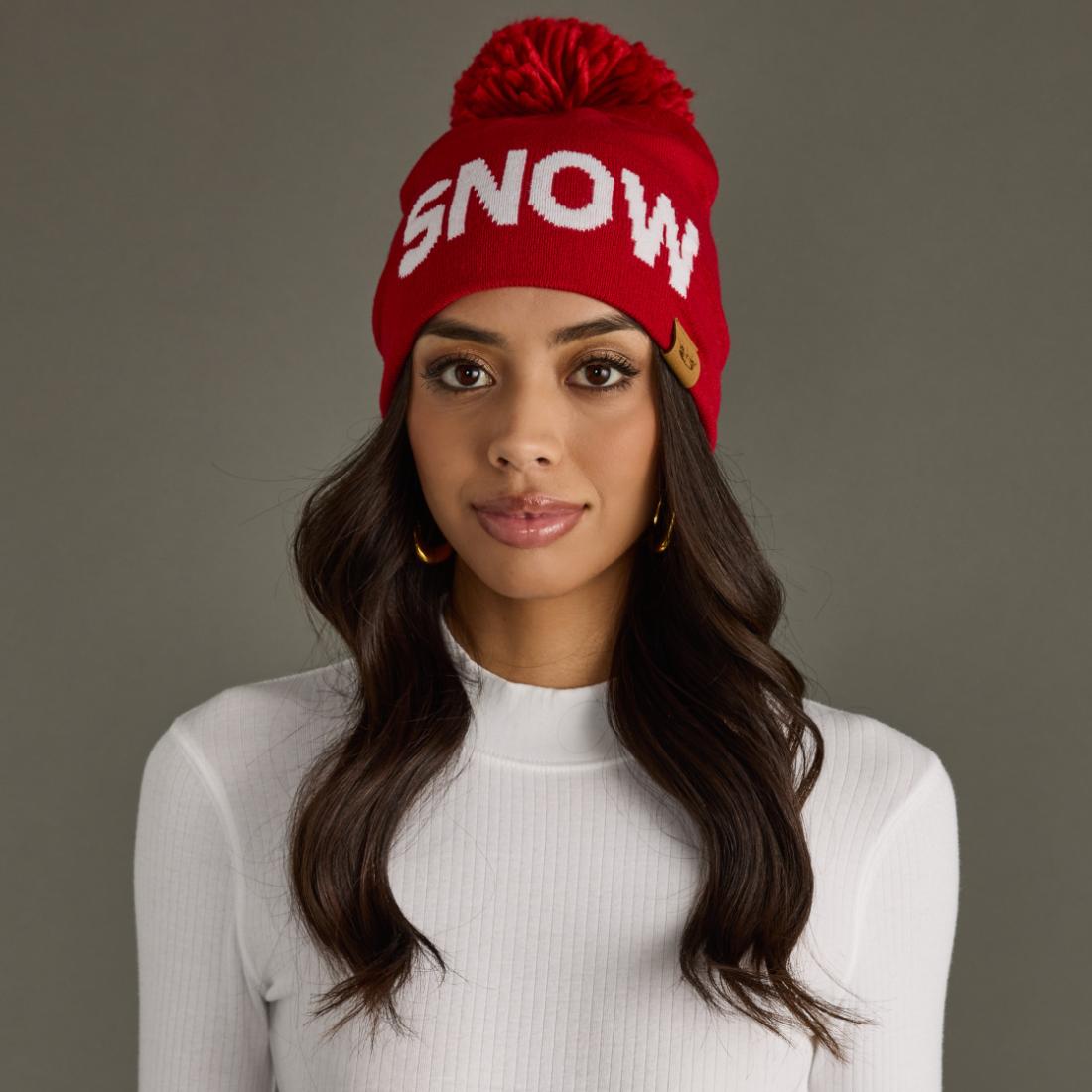 Embrace winter in style with our red knit pom hat featuring bold white "SNOW" text on the front. This cozy winter hat celebrates snow days and mountain adventures, making it perfect for skiing, snowboarding, winter hikes, or everyday cold-weather wear. The one-size construction ensures a comfortable fit for most, making it an ideal gift for snow lovers or a go-to accessory for your own winter wardrobe. Whether you're carving down the slopes, building snowmen, or simply enjoying a snowy day, this pom hat brings warmth, personality, and snow-loving spirit to every cold-weather adventure.