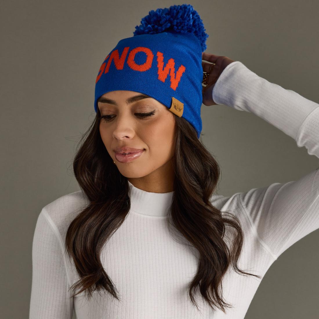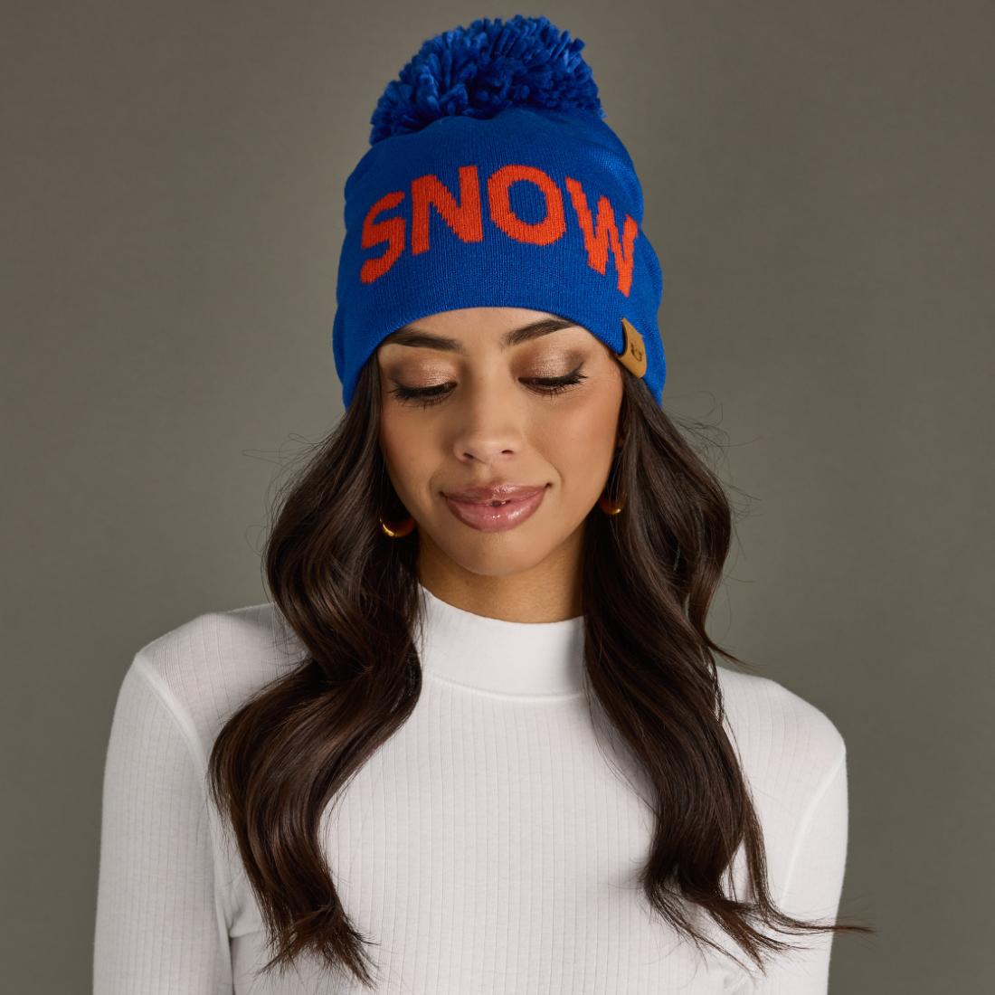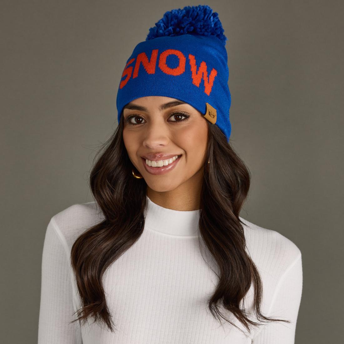 Embrace winter in style with our royal blue knit pom hat featuring bold orange "SNOW" text on the front. This cozy winter hat celebrates snow days and mountain adventures, making it perfect for skiing, snowboarding, winter hikes, or everyday cold-weather wear. The one-size construction ensures a comfortable fit for most, making it an ideal gift for snow lovers or a go-to accessory for your own winter wardrobe. Whether you're carving down the slopes, building snowmen, or simply enjoying a snowy day, this pom hat brings warmth, personality, and snow-loving spirit to every cold-weather adventure.