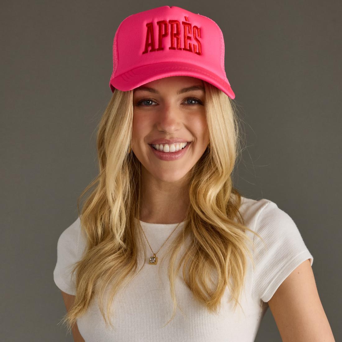 Celebrate the après-ski lifestyle with our bright pink trucker hat featuring bold red "Après" embroidery on the front. This versatile cap captures mountain town vibes and relaxed winter style, making it perfect for ski trips, après-ski gatherings, outdoor adventures, or everyday casual wear. Perfect for ski enthusiasts and anyone who loves the après lifestyle and mountain culture.