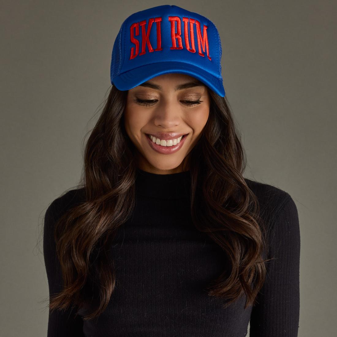 Celebrate the après-ski lifestyle with our blue trucker hat featuring bold red "Ski Bum" embroidery on the front. This versatile cap captures mountain town vibes and relaxed winter style, making it perfect for ski trips, après-ski gatherings, outdoor adventures, or everyday casual wear. Perfect for ski enthusiasts and anyone who loves the après lifestyle and mountain culture.